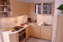 Voll eingerichtete Landhausküche mit gemütlicher Essecke: Herd mit Ceranfeld, Backofen, Kühlschrank, Spülmaschine, Kaffeemaschine, Wasserkocher, Toaster und ...