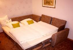 Schlafsofa im Wohnzimmer für bis zu 2 Personen (Liegefläche 1,60 m x 2m).