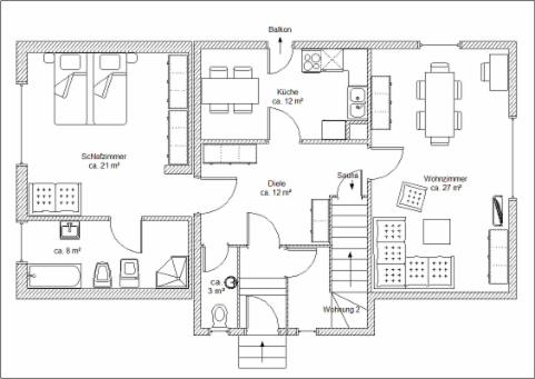 Komfortabel wohnen Sie in unserer großzügigen und exlusiv eingerichteten Ferienwohnung 1. Auf rund 80 qm bieten wir Ihnen alles Gute für einen angenehmen Urlaub.